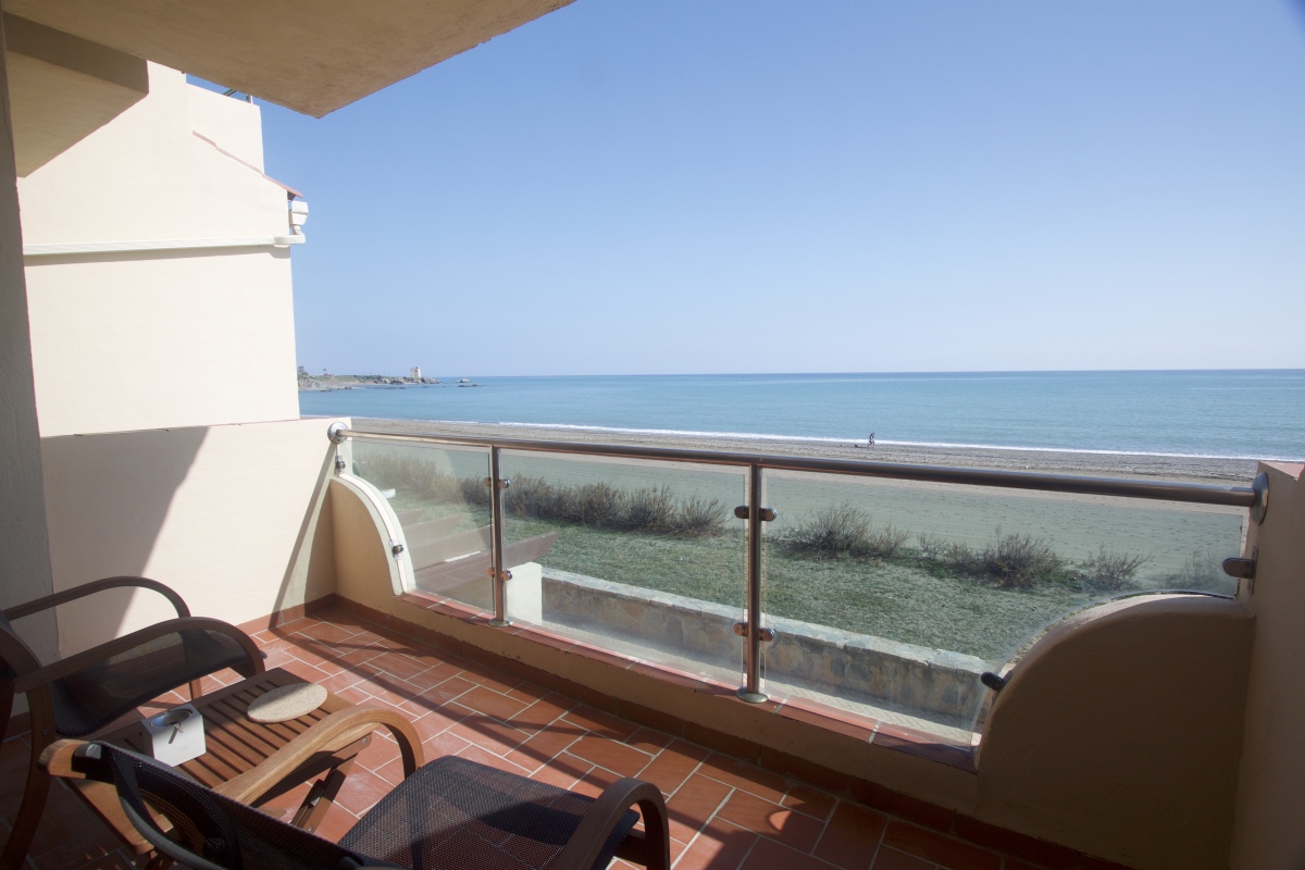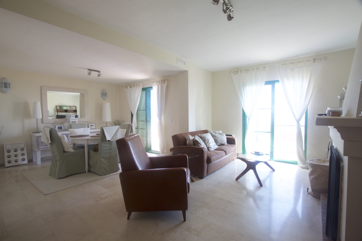 Overview: El Diamante is an exclusive and highly desirable development located at the frontline of Sabinillas Beach. El Diamante is a gated community with tropical communal gardens, a communal pool and direct access to Sabinillas' Blue Flagged beach. The promenade in front of El Diamante stretches the length of the beach and provides easy access to Sabinillas town and La Duquesa Marina. This 3 bedroom Duplex apartment is finished to a high standard and boasts stunning uninterrupted beach views and direct access to the communal pool and gardens. Its unique location provides easy access to all surrounding areas including shops, restaurants and all the attractions of the Costa del Sol nearby. At the same time, by being first line beach, it provides the peace and quiet atmosphere one needs to relax. Close to mountains, beach, golf courses, shopping centres, marinas, and airports, this apartment is the ideal place to live either full time, or to have as a holiday house. Bedrooms:3 Bathrooms:2 Pool:communal Internal size:128 m2 External size:18 m2 Parking:communal Furnished:yes Orientation:East Price : 360.000 € Este precioso apartamento está situado en una urbanización en primera línea de playa en Casares Costa. En una comunidad cerrada con jardines tropicales comunitarios, piscina comunitaria, garaje y acceso directo a la playa. Este apartamento dúplex de 3 dormitorios con acabados de alto nivel, cuenta con impresionantes vistas a la playa y al mar, el salón tiene un bonita chimenea y es amplio y luminoso con acceso a la terraza privada. La cocina tiene un buen tamaño y está completamente equipada con electrodomésticos modernos de alta calidad. El dormitorio principal es una amplia habitación con baño privado y terraza privada. El segundo dormitorio es una habitación doble con acceso a la terraza privada que tiene vistas al mar. El tercer dormitorio está en la planta baja y también es muy amplio. La propiedad está amueblada y se beneficia de aire acondicionado frío-calor y TV Sky. Es muy recomendable ver esta propiedad debido a gran tamaño, el buen estado en que se encuentra y las vistas impresionantes que tiene al mar..