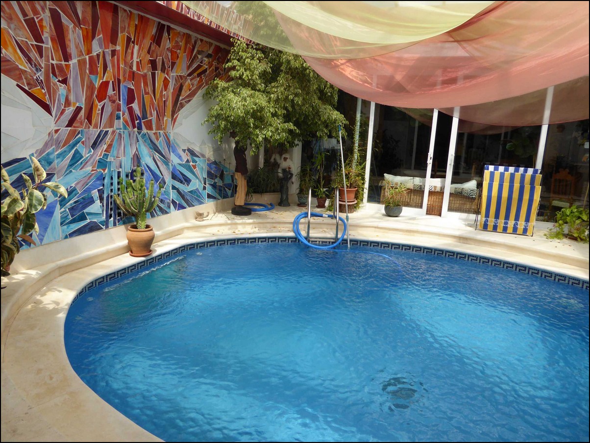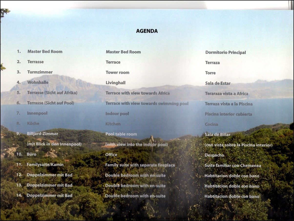 Overview: What you should know about this villa / bed and breakfast In Tarifa. · Bedrooms 8 · Bathrooms 6 · Living area approx. 600 m² · Total about 920 m² · Land about 11200M2 · Terrace 320 m² · Pitch 10 · Condition: very good · Heating system: Gas · Flooring tiles, stone Equipment and features of this villa: Basement, cellar, Patio, Swimming pool, Sea / lake view, granny flat, Garden, Terrace, Fireplace, Mountain / panoramic views, Tennis Court, Equipped kitchen DREAM LOCATION! A magnificent property on more than 11,000m² of land, with stunning views over the Strait of Gibraltar to Africa. Located in the exclusive El Cuarton. This accommodation is suitable for bed and breakfast, with eight bedrooms that surround the beautiful indoor pool with skylights. To the left of the entrance gate is the parking lot. The property has an old cork oak and diverse vegetation. The outdoor pool is located on a sheltered location, where the sun shines the longest, and has a pool house with barbecue area. Further down is a tennis court. The villa is accessed via the front terrace with glass doors leading to the living / dining area (98sqm). There is a cozy sofa with a large open fireplace, a corner bar, glass doors to the terrace with African views and the indoor pool. In the basement is a pool billiard room, with orig. Tournament table. The special ... an underwater window to the indoor pool. Perfect B&B or large family villa..
