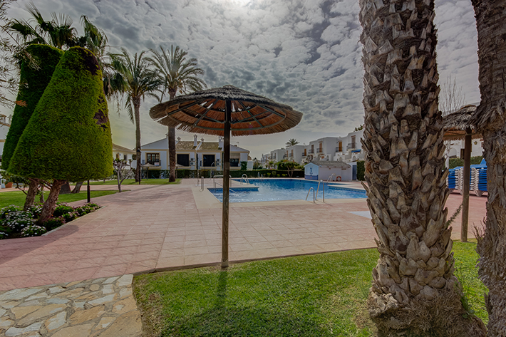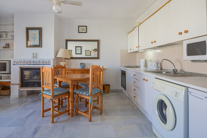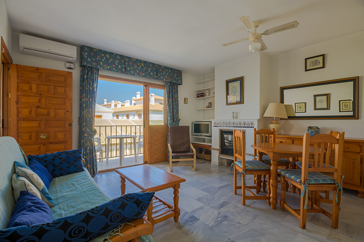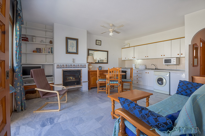• Overview: Apartment with 1 bedroom and 1 bathroom, located on the first floor within the urbanization Vera Coast. This very well maintained urbanization has 2 swimming pools and beautifully landscaped gardens just 300 meters from the beach. The apartment has a spacious living-dining room with fireplace and ceiling fan. There is an open kitchen with ceramic hob, oven, washing machine, fridge / freezer and microwave. In addition, there is a double bedroom, closets and a bathroom with bath. There are two balconies; one to the living room and one to the bedroom. There is also automatic air conditioning in the living room and the bedroom. Vera Coast is a closed urbanization within walking distance of the beach and various shops and restaurants..
